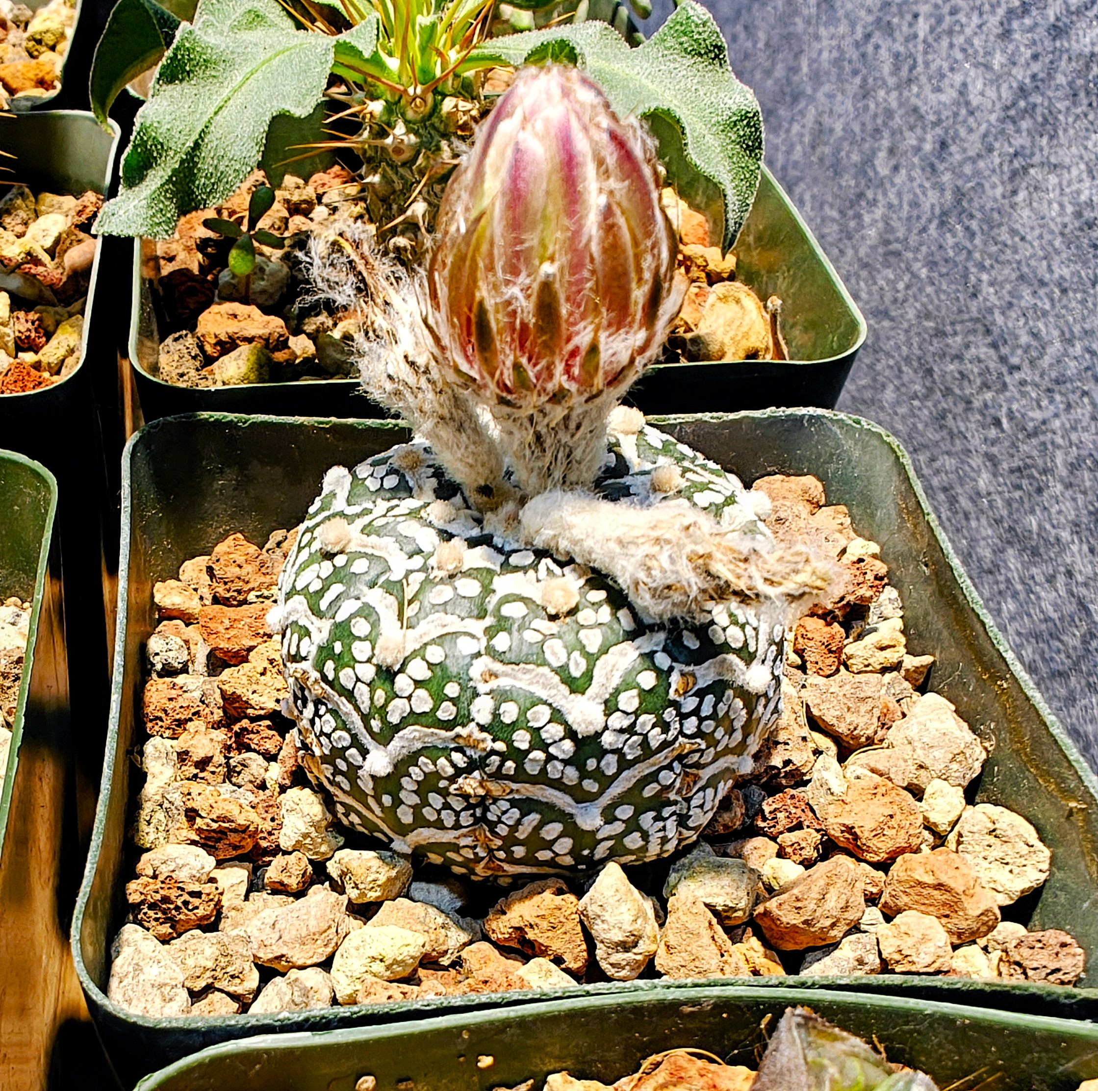 Super Kabuto The Astrophytum “Super Kabuto” are not just looking fine, they also are budding out with huge flower buds.
