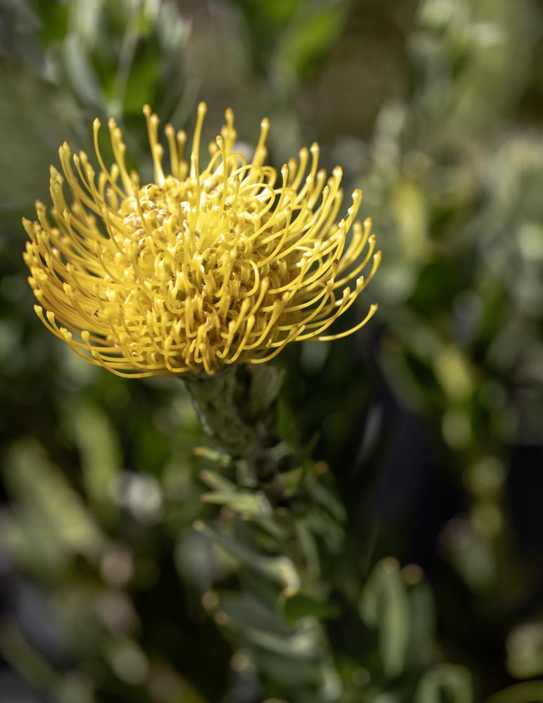 Leucospermum “Goldie” is the pincushion protea we are showing you today. We have more! And protea-Proteas too! It is very bright. As bright as the far side of the moon illuminated by the Artemis II mission on a spring evening.