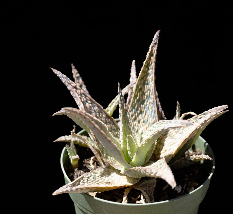 Aloe “Pink Blush” Other Images: Origin: South Africa Description: Spotted Aloe, small clumping hybrid to 12″ w/serrated pink edges Characteristics: Temperature: Hardy to 25F Full Sun to Part Shade Ultra Soil Blend Low Water Other Images:
