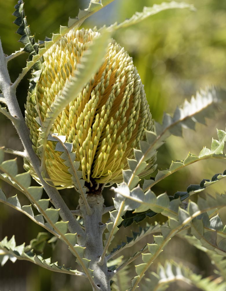 Dense, rounded shrubby tree. Cream colored cone shaped flower spikes in summer and fall. Serrated leaf edges up and down the branches.