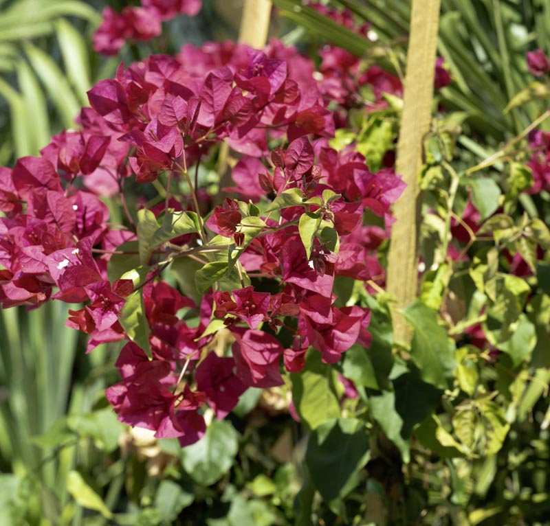 Bougainvillea “Barbara Karst” Other Images: Origin: Brazil Description: Evergreen Vine Large, vigorous evergreen vine with loads of magenta-red flowers throughout the year. Great as a patio plant, prune to size. Characteristics: Temperature: Hardy to 25F Sun: Full Sun Water: Low Size: to 25ft Other Images: