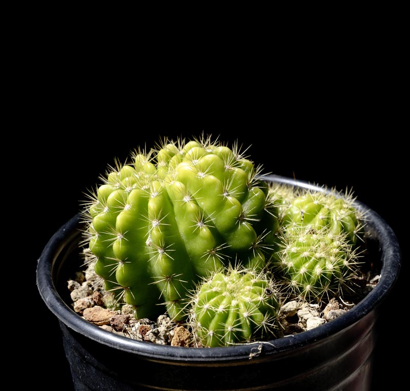 Small globose clump-forming cactus that form attractive mounds. Golden spines. 4″ fragrant pure-white flowers.