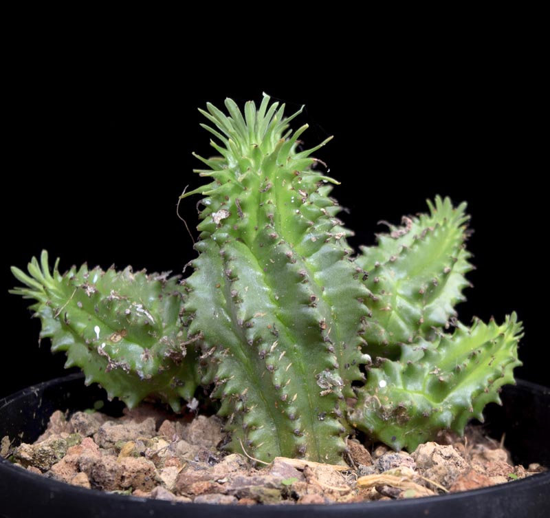 Mounds of spiraling green stems to 10″h. with small leaves at the tips.