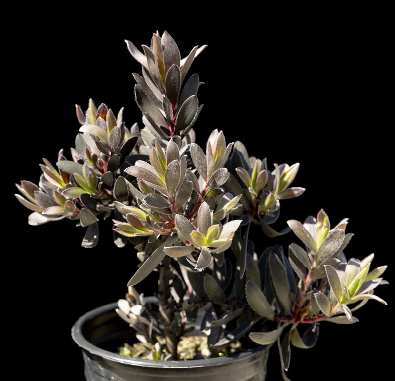 Bushy and compact with strikingly deep purple-black folliage. Slow growing. Burgundy flowers in spring. Excellent cut flowers. Prefers poor, fast-draining soils.