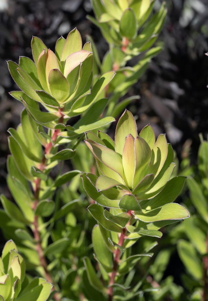 Fast growing to a compact 6ft. Yellow cone flowers surrounded by vigorous yellow bracts through winter and spring. Flowers are great for cuttings and drying.