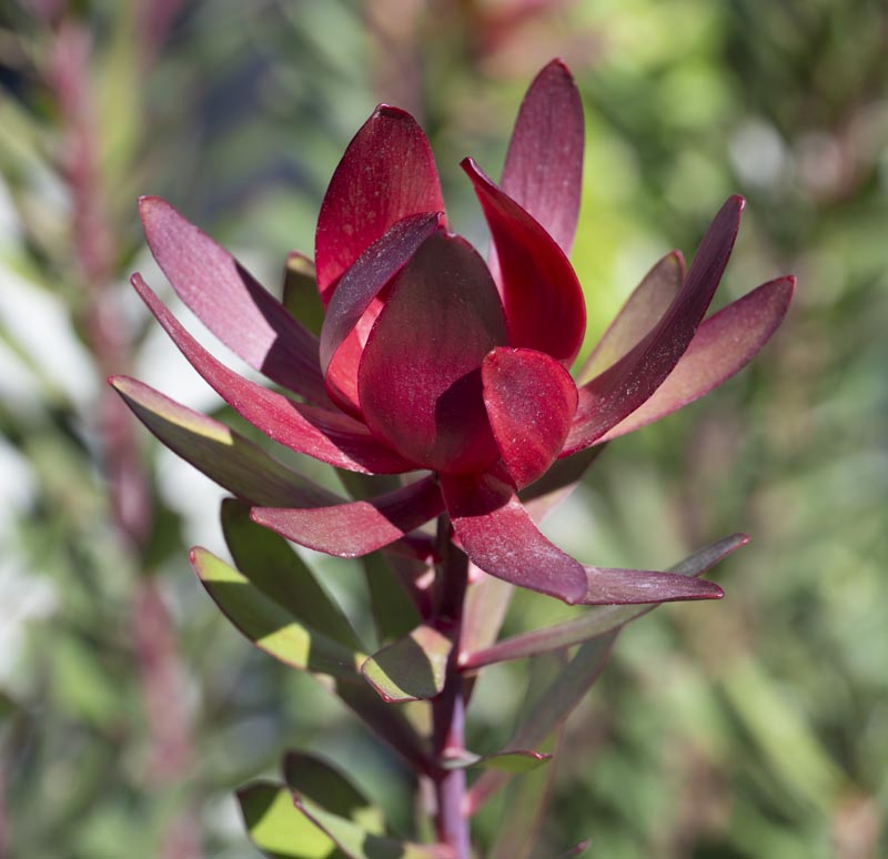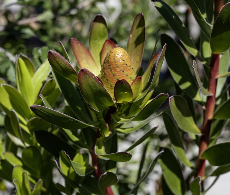 Very vibrant red bracts that surround the central yellow and red cone flower on vigorous long stems. Flowers are great for cuttings and drying.