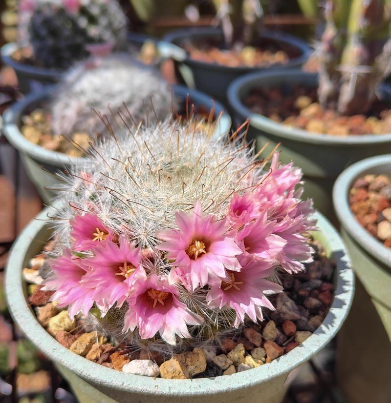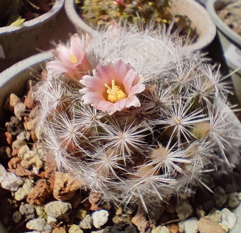 Mammillaria glassii Other Images: Common Name: Cabeza blanca Origin: Mexico Description: Small, 4″ cylindrical stems, will form larger multistem clusters. Light pink flowers. Characteristics: Temperature: Hardy to 25F Full Sun to Part Sun Ultra Soil Blend Low Water Other Images: