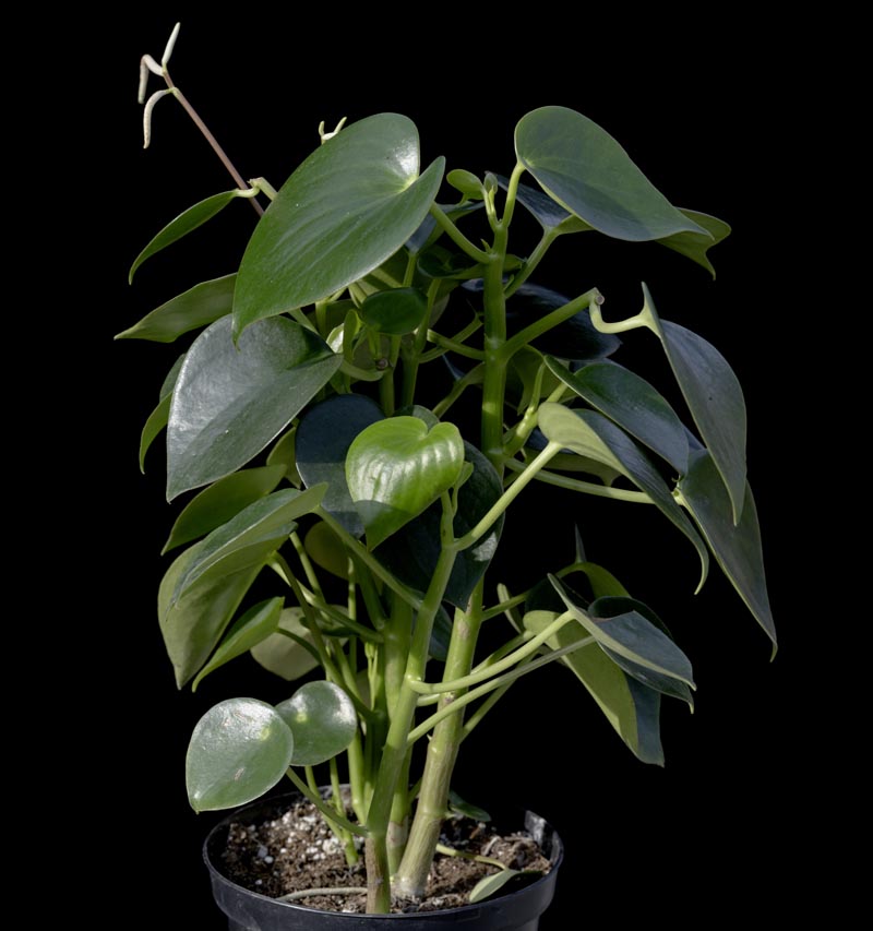 Large green semi-succulent leaves on upright stems. Glossy heart-shaped leaves. Tropical Houseplant can handle a variety of indoor light conditions, bright indirect is best. Fast draining soil, moderate (distilled) water but prefers not to sit in water.