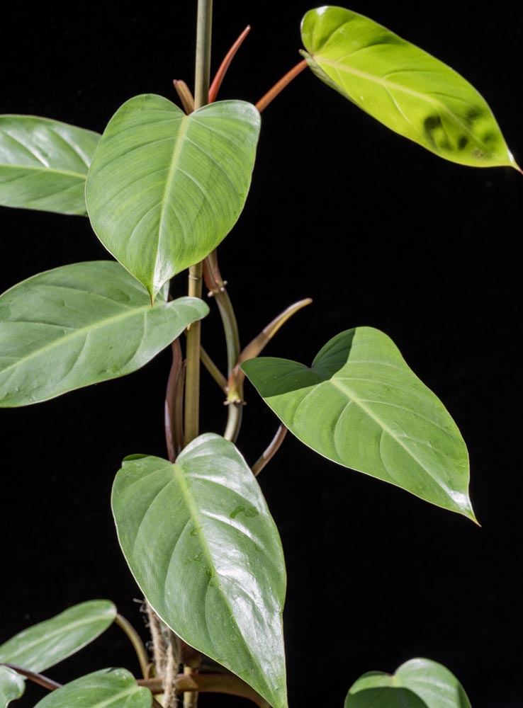 Large emerald green sword-shaped leaves. Climbing vines that can be trained. Tropical Houseplant can handle a variety of indoor light conditions, bright indirect is best with some direct sun. Fast draining soil, moderate water, some humidity.