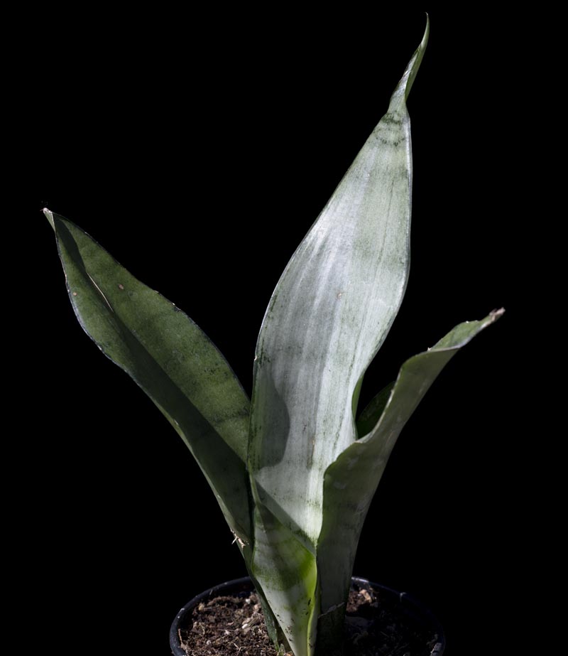 Silver-leafed cultivar of the popular Snake Plant. Wide leaves, shorter form.