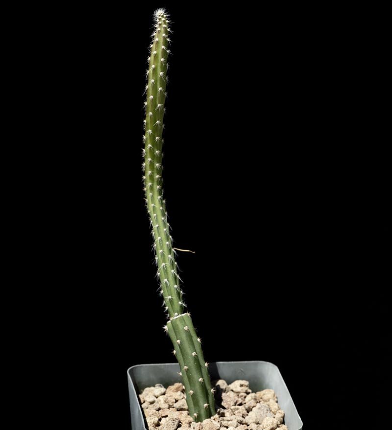 Climbing stems, to 15ft long, narrow 1/2″ to 1″ across. Lots of bristly white to brown spines. Fragrant white and yellow flowers, one night each year. Said to have a vanilla fragrance.
