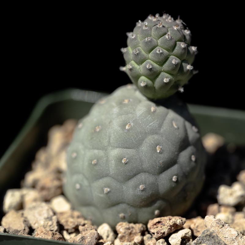 Stunning globular stems stacked up, will break off and roll with few recumbent spines. Ivory white flowers. Very arid, can handle extreme desert and blazing hot direct sun. Keep dry in winter.