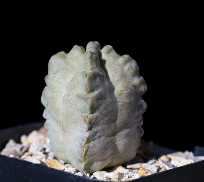 Rare caudiciform stapeliad; dry and warm in winter. Can grow to 10″ tall. We grow them with weekly water during the hot part of the year and monthly or less in the winter.